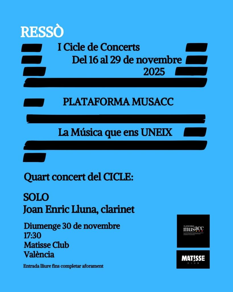 Amb este recital tan especial, tanquem el cicle Ressò 2025, quatre concerts que han omplit els espais de música, investigació i creació contemporània, i que han evidenciat la força del talent valencià i la importància de donar suport a projectes artístics arriscats i innovadors.